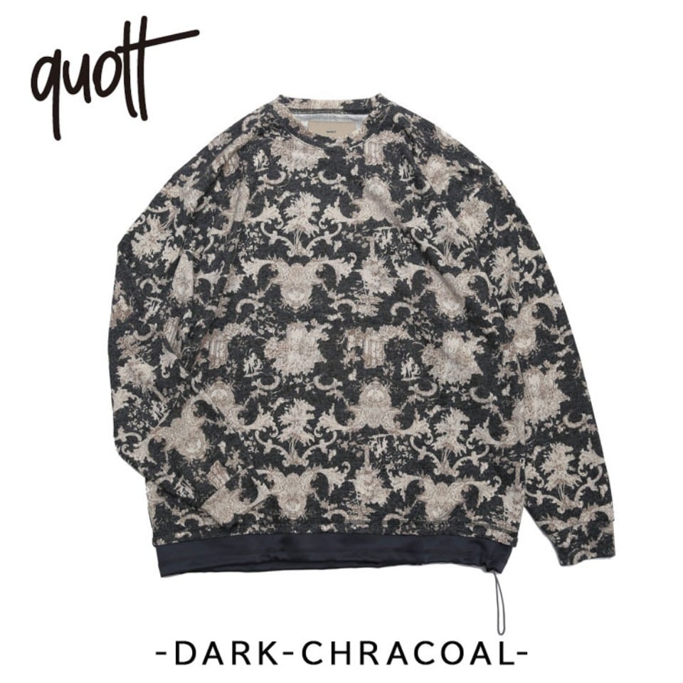 裾をレイヤード状に切り替えたリラックス感のあるニット。 裾のドローコードでシルエット、着丈に変化をつけることが可能。 色味を抑えた西洋美術柄がコーディネイトのアクセントとして取り入れやすく、 ニット特有のやわらかな印象も魅力です。 M 身幅:61cm 裾幅:56cm 着丈:66+4cm L 身幅:65cm 裾幅:60cm 着丈:69.5+4cm ACRYL 100%, 裾: PORYESTER 100%