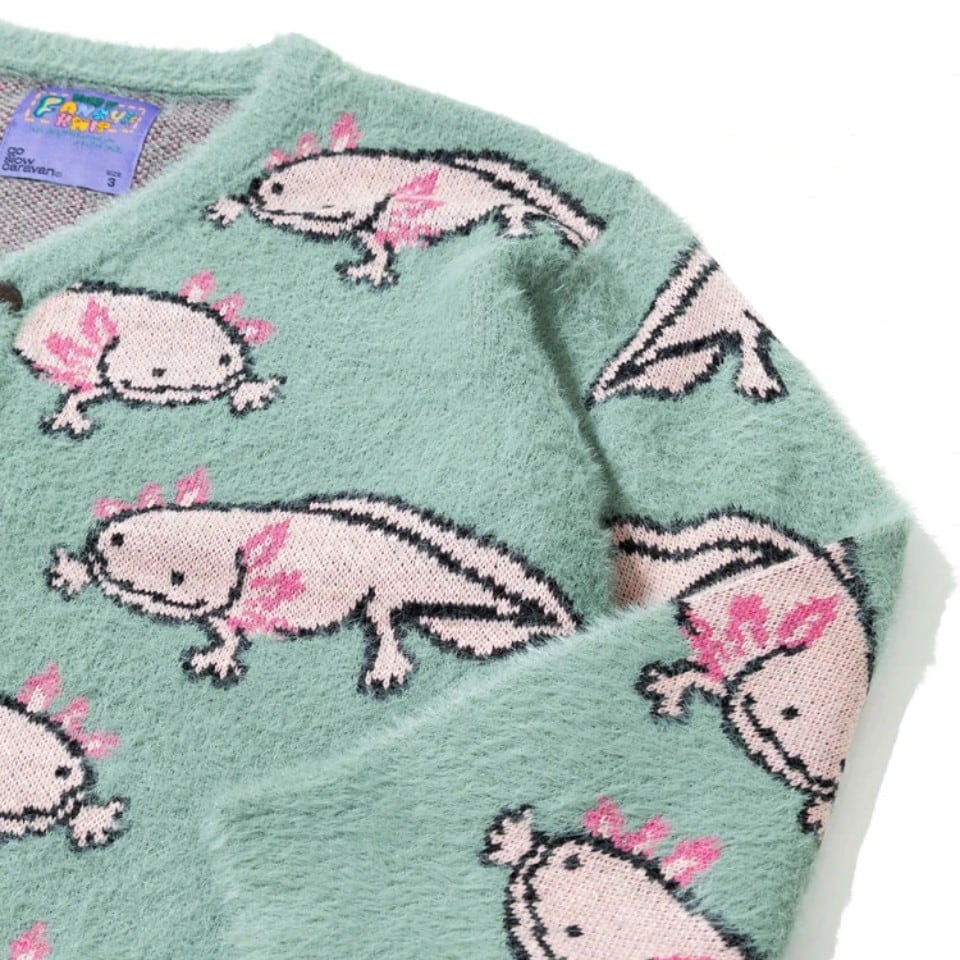 ウーパールパーの総柄ニットが再び登場。 毛足の長いシャギー糸をメインに使用することで艶やかな高級感ある仕上がりに。 ダブルジャガードならではの柄の雰囲気も良いリラックスカーディガン。 ナイロン58% アクリル35% ウール7% サイズ 3(M) 身幅60cm 着丈63cm 袖丈54cm 肩幅51cm 4(L) 身幅63cm 着丈67cm 袖丈56cm 肩幅54cm 5(XL) 身幅67cm 着丈70cm 袖丈58cm 肩幅56cm