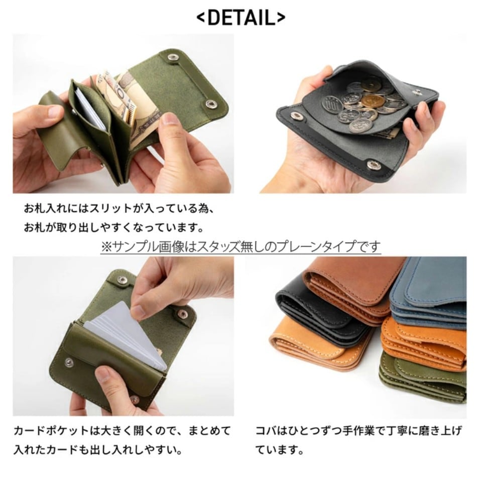 フラップにはアンブレラスタッズをワンポイントであしらい、