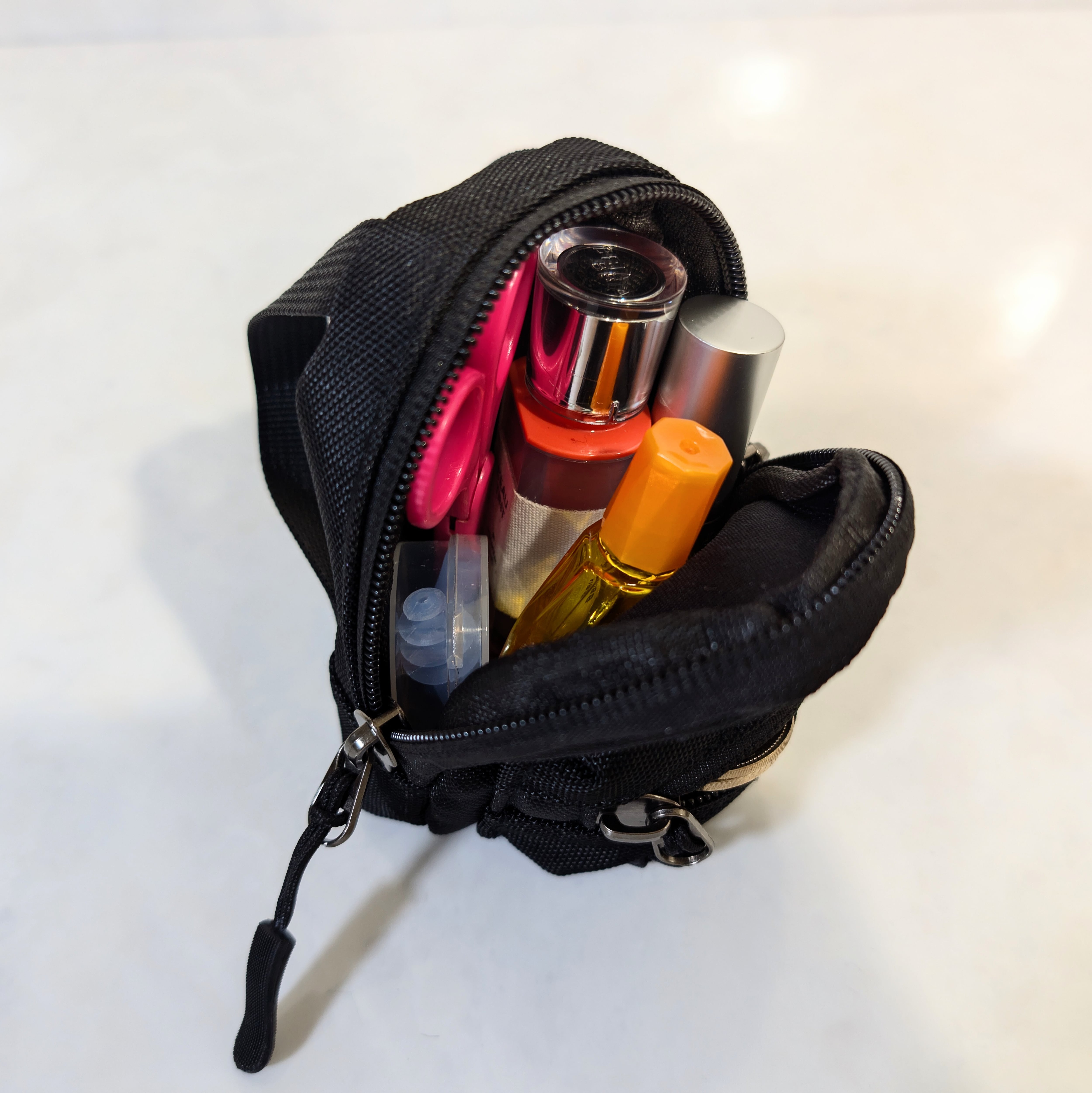 ちょっとした小物入れにご使用出来、フックでベルトループやカバンに取り付け可能。