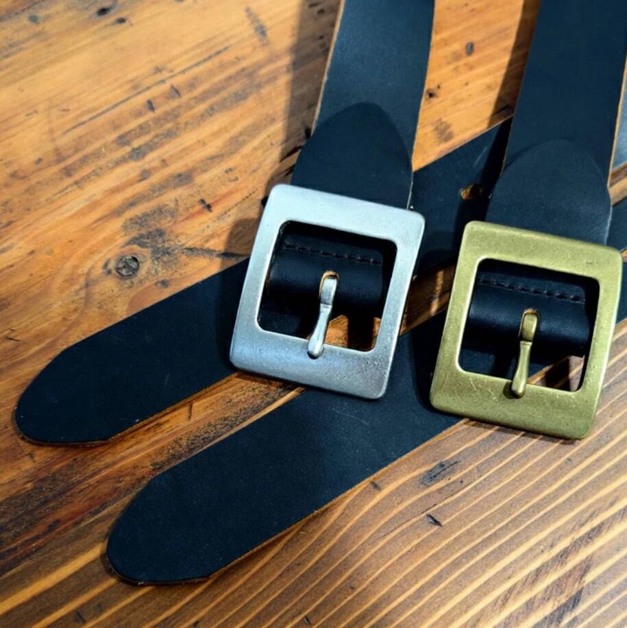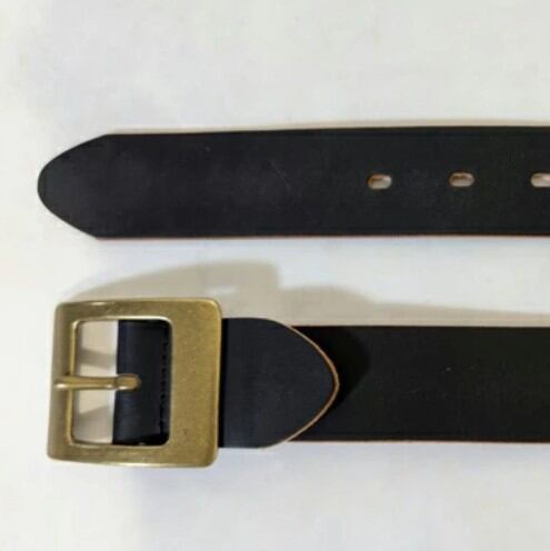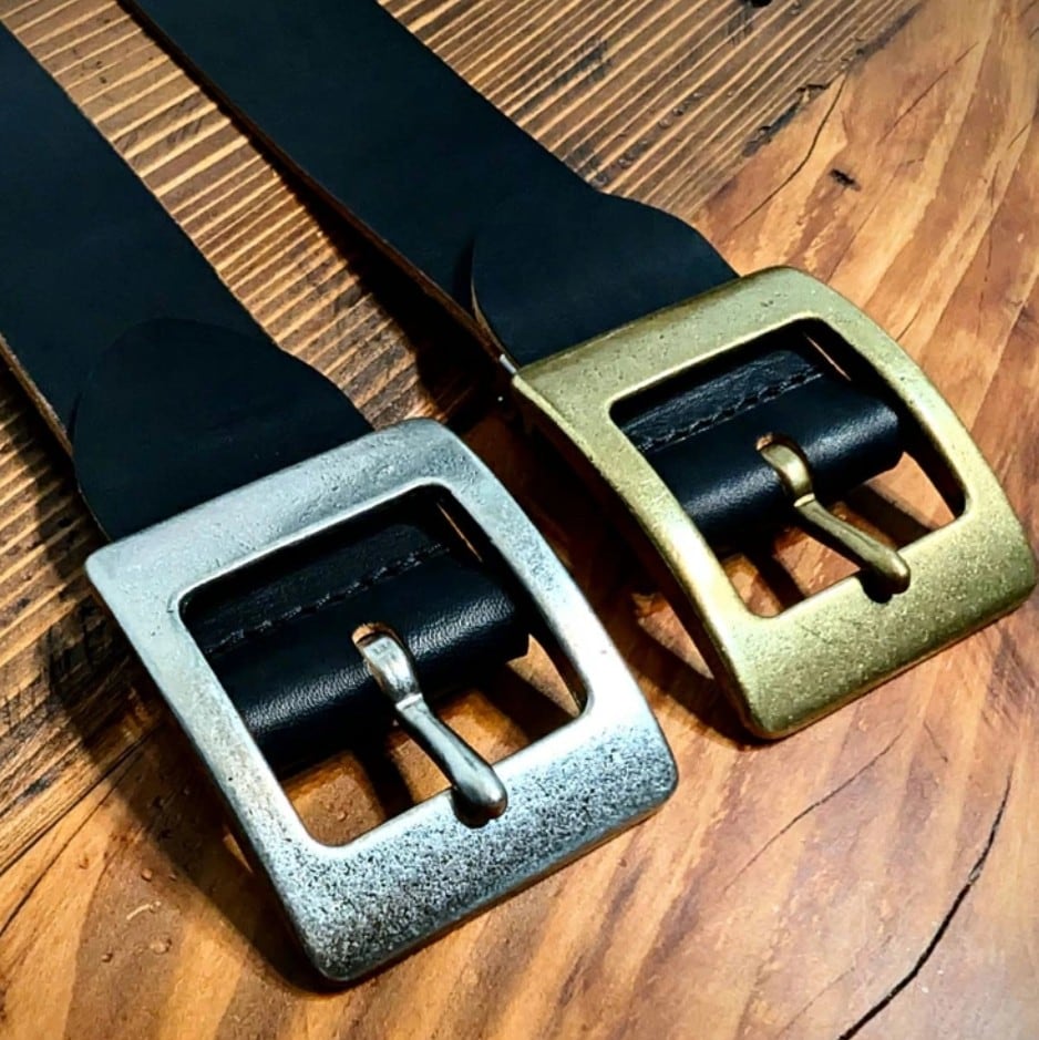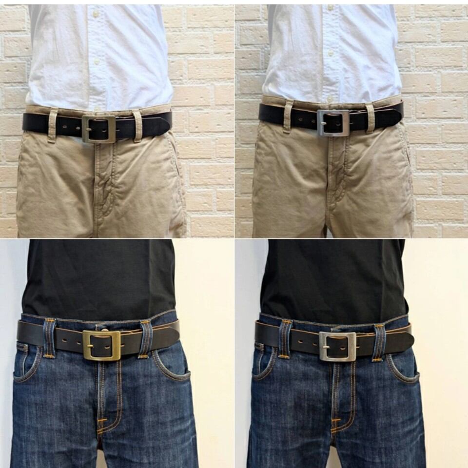 太めの革幅による男らしい武骨さと、真鍮バックルの深い輝きが、コーディネートをワンランク上に引き上げます。