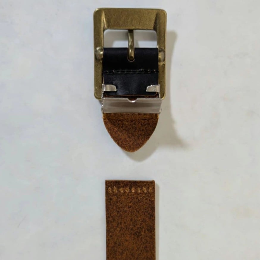 バックルは国産真鍮を使用。革と共に経年変化し、長く育てる楽しみを味わえる一本です。