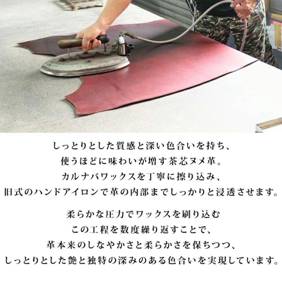 本製品には、姫路産の茶芯ベジタブルタンニンレザーを採用。
