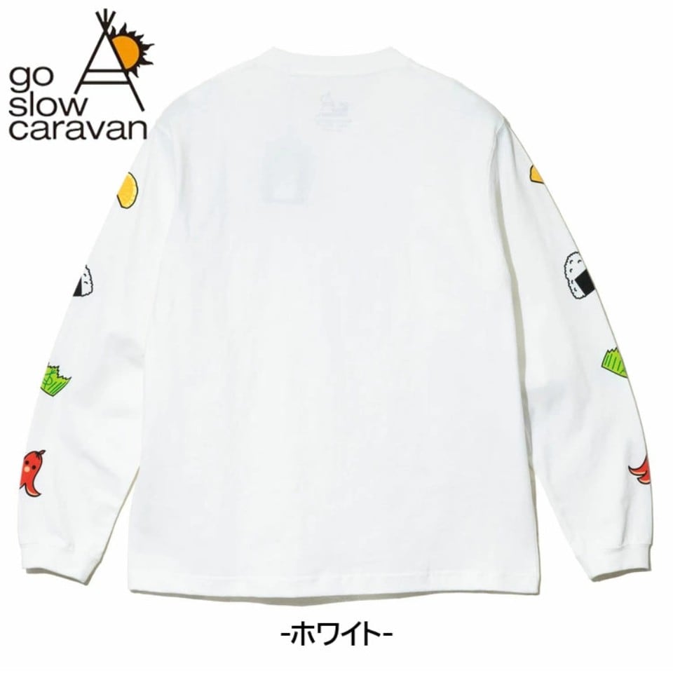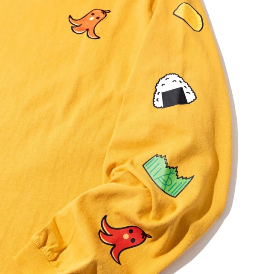 袖にはお弁当の具材たちをライン状にあしらった遊び心満点のロングスリーブTシャツ