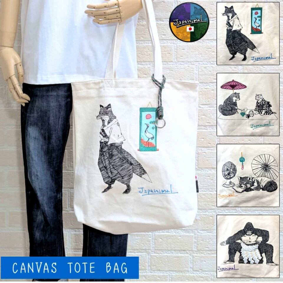 日本文化をモチーフにした、遊び心のある和風デザインのキャンバストートバッグ。