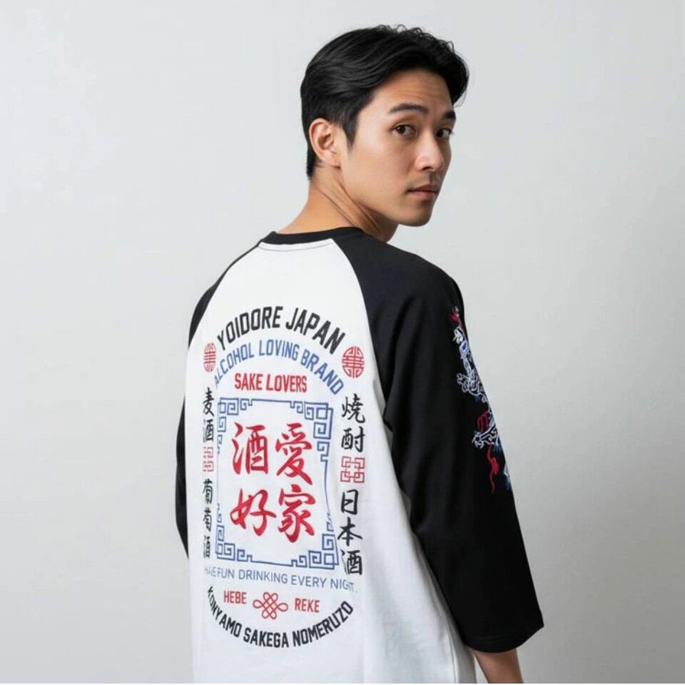 YOIDOREを代表する定番モチーフ「酒愛好家」シリーズにラグラン7分袖TEEが加わりました。