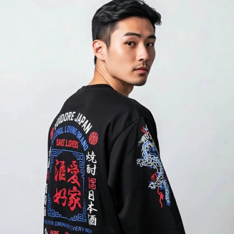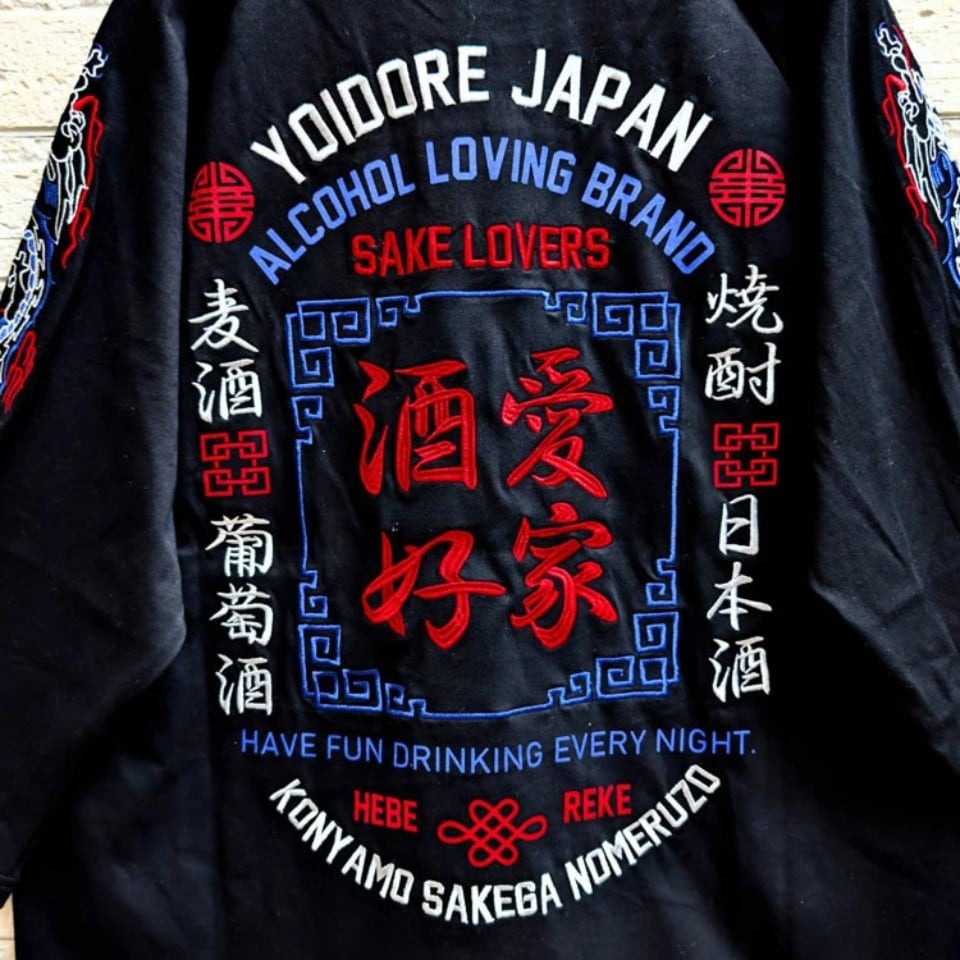 さらに両袖にはロゴに合わせたトリコロールカラーで刺繍された酔龍が昇っていく、まさに死角なしのレイアウト!