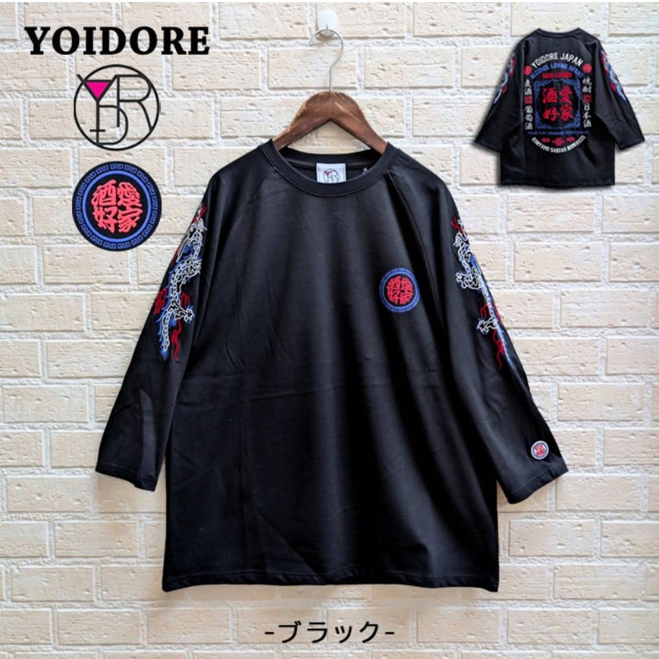 YOIDORE 酒愛好家 ラグラン7分袖Tシャツ(ブラック)