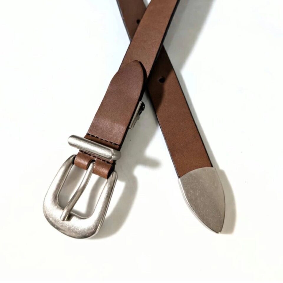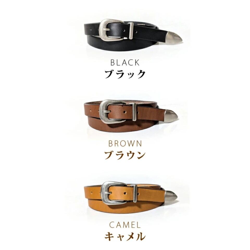 日本製 栃木レザー メタルチップナローベルト(ブラウン)