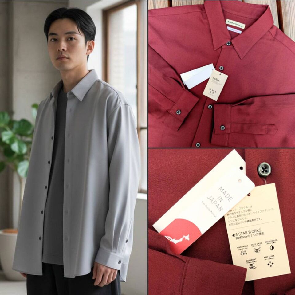 人気の機能素材"Reflaxリフラクス"をCIAO国産定番シリーズで1番人気のとろみシャツ型におとしこみました。