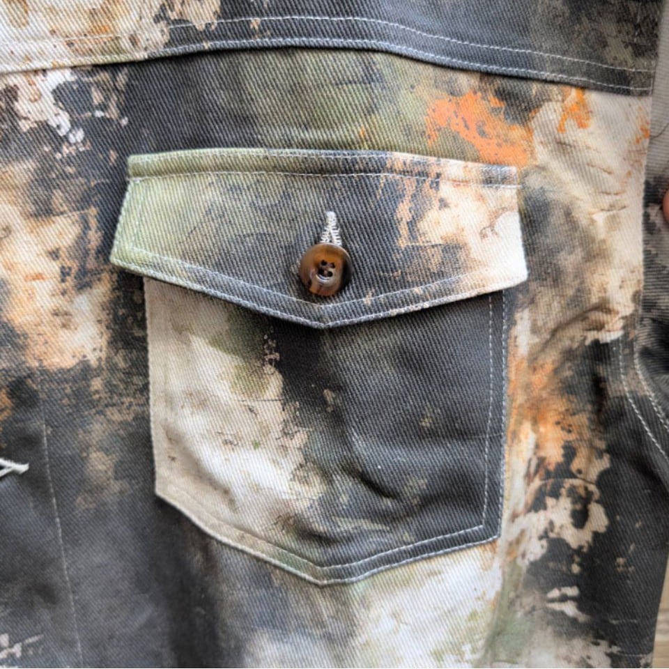 ペイント風のグラデーションカラーが特徴的なトラッカージャケット。