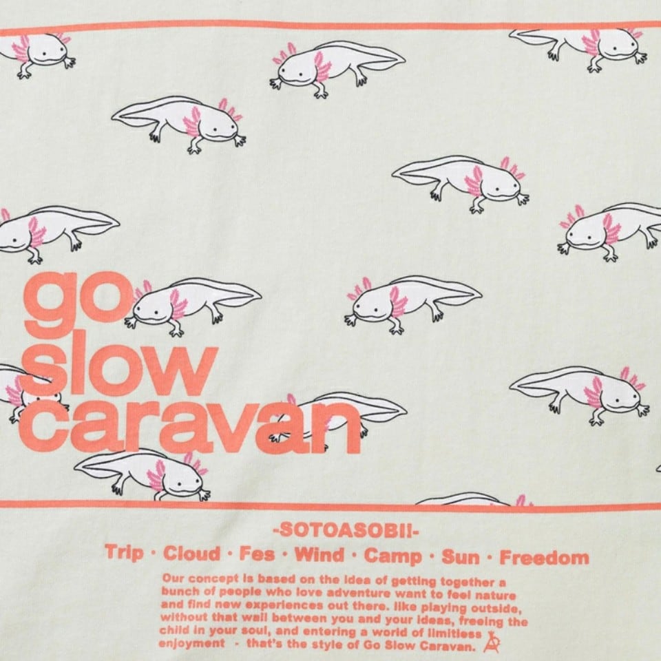 バックプリントにゴースローキャラバンの人気オリジナル柄をスクエア状に切り取り、コンセプトを添えた定番シリーズ☆