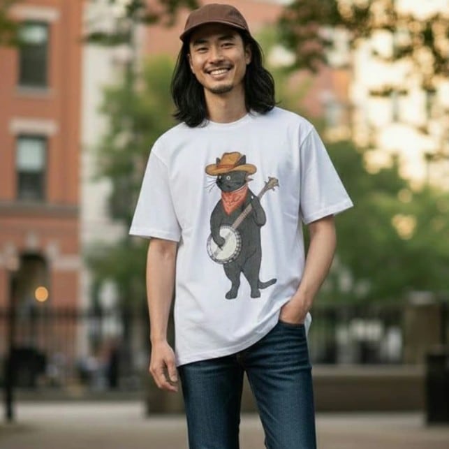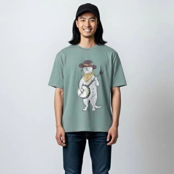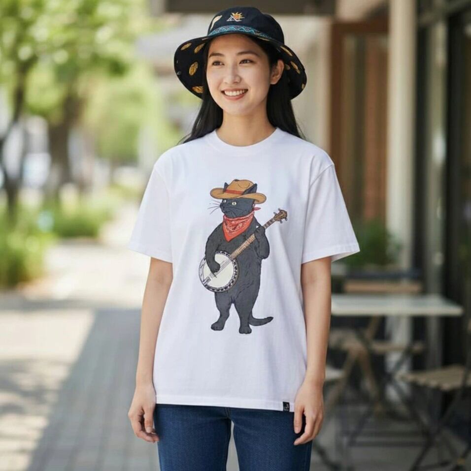 フェスやパーティーなど、楽しいシーンにぴったりな“バンジョー猫”が主役のグラフィックTシャツ☆