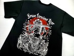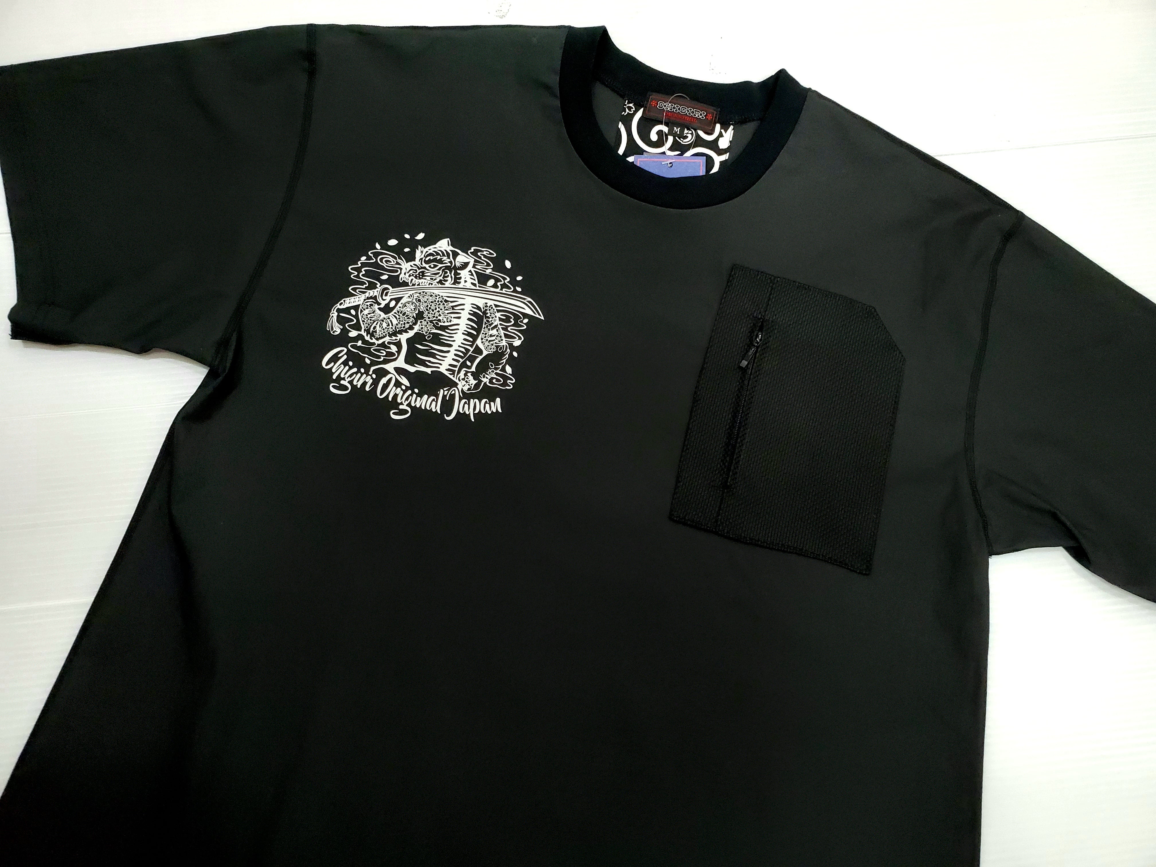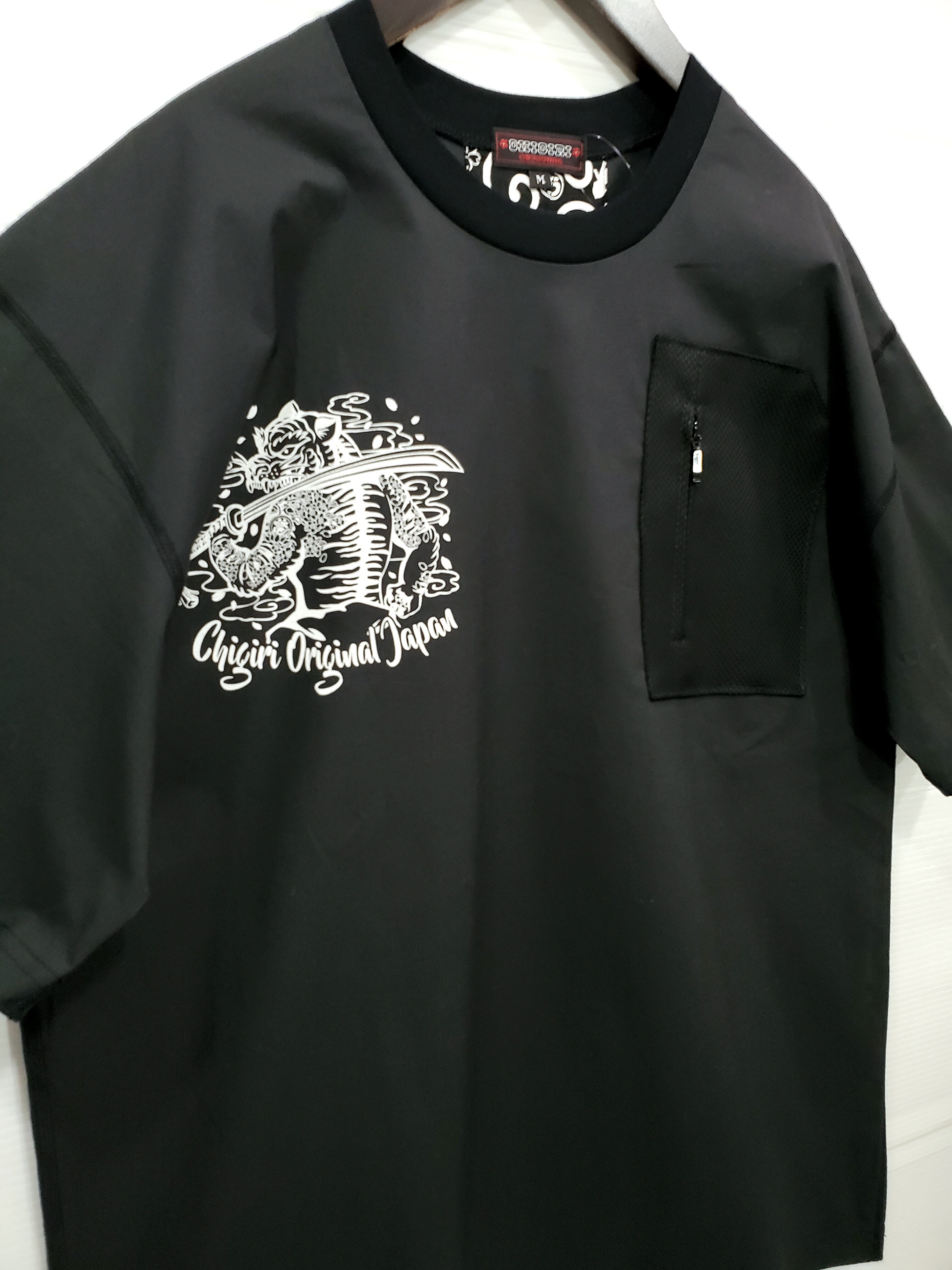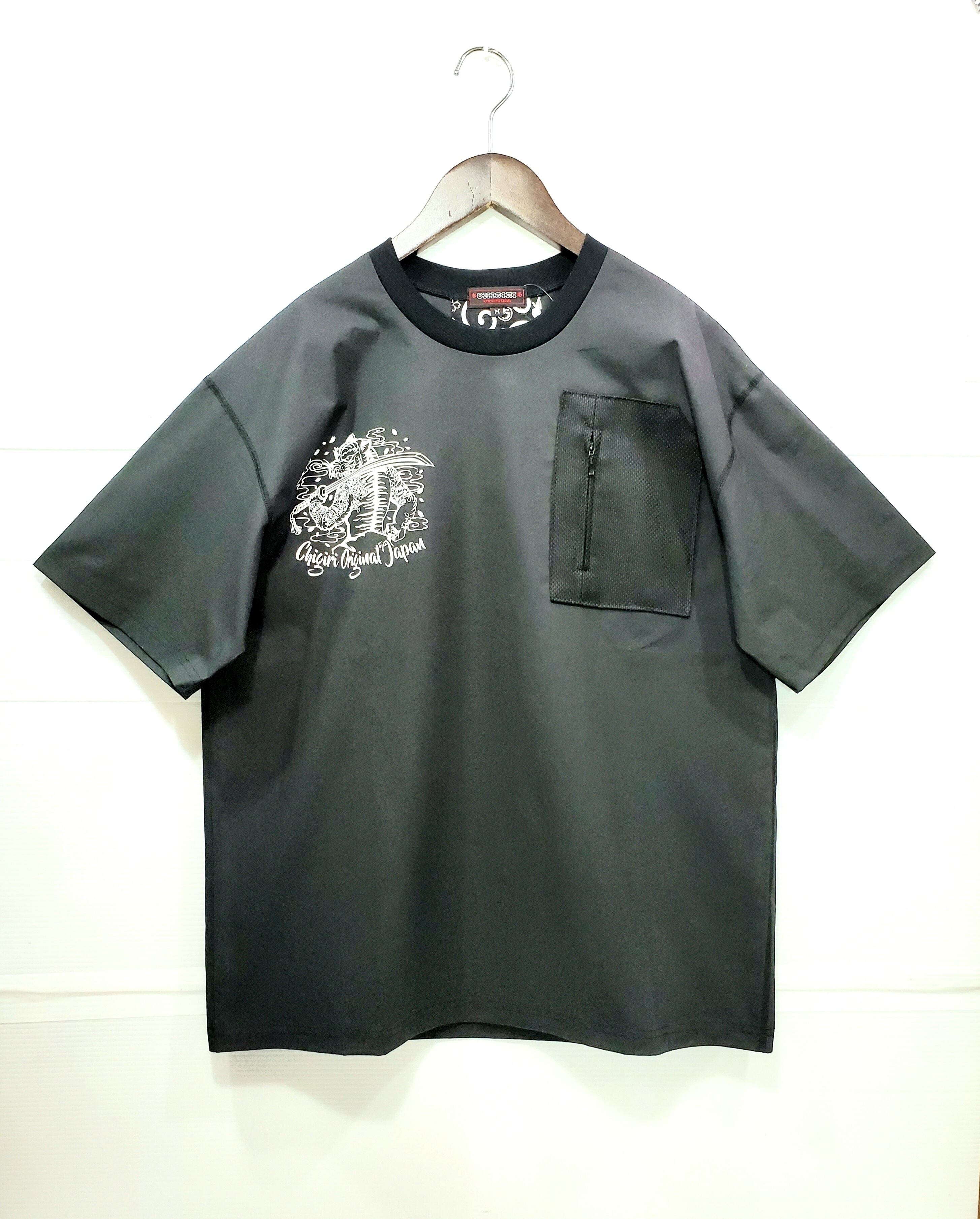 タイプライターストレッチ生地を使用した フロントポケット付きバックプリントTです。 軽く薄手でありながらハリ感があり丈夫な布帛生地です。 ストレッチ(伸縮性)があり布帛生地ですが容易に脱着も出来ます。 M 肩幅51 身幅54 着丈66.5 袖丈22 L 肩幅54.5 身幅57 着丈69 袖丈23 ※多少の誤差はご了承下さいませ
