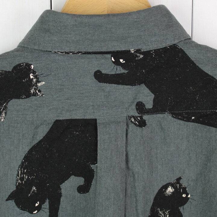 CIAOTOKYO 日本製 ユニセックス黒猫シャツ(グリーン)