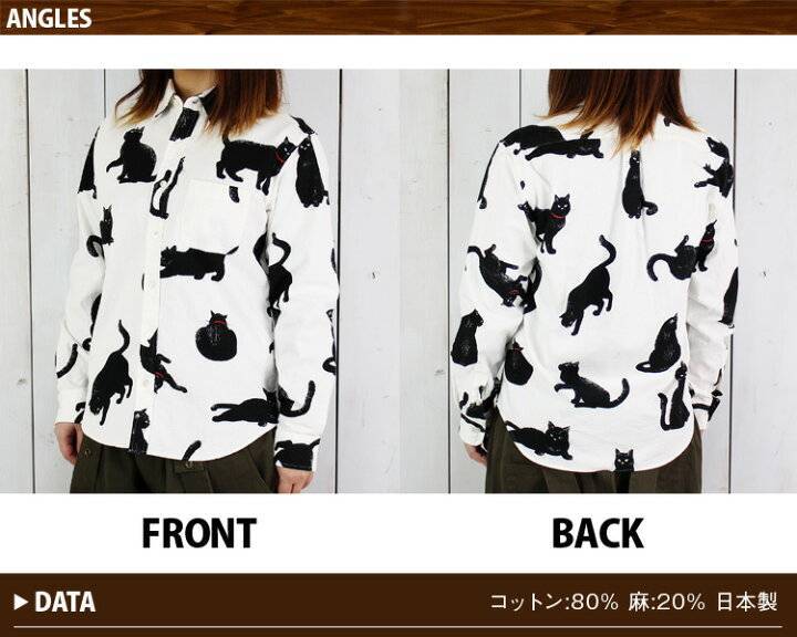 CIAOTOKYO 日本製 ユニセックス黒猫シャツ(ホワイト)