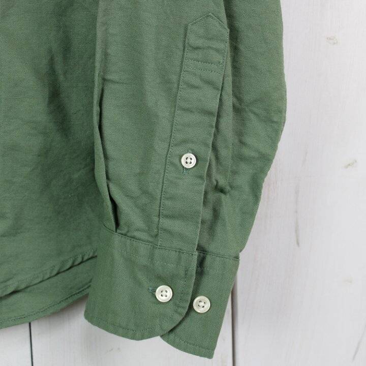 上質な国産オックスフォード生地を使用 縫製、生産に至るまですべて日本製にこだわったシャツです。 首元はスッキリした印象が出るバンドカラーとなっており、サイズ感は流行り廃りのないジャストサイズなサイズ感となっております。 細かくしっかりとした縫い目やボタンホールステッチ等、高い技術と品質で長く愛用出来るアイテムとなっています。 採寸表は画像に記載しておりますのでご参照くださいませ。