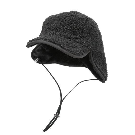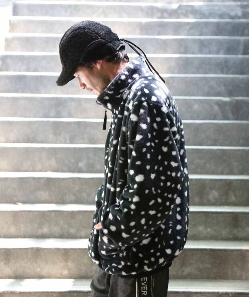 表と裏で毛足の異なるボア生地を使用した耳当て付きキャップ。ふんわりと包み込むような暖かさで冬場に重宝します。