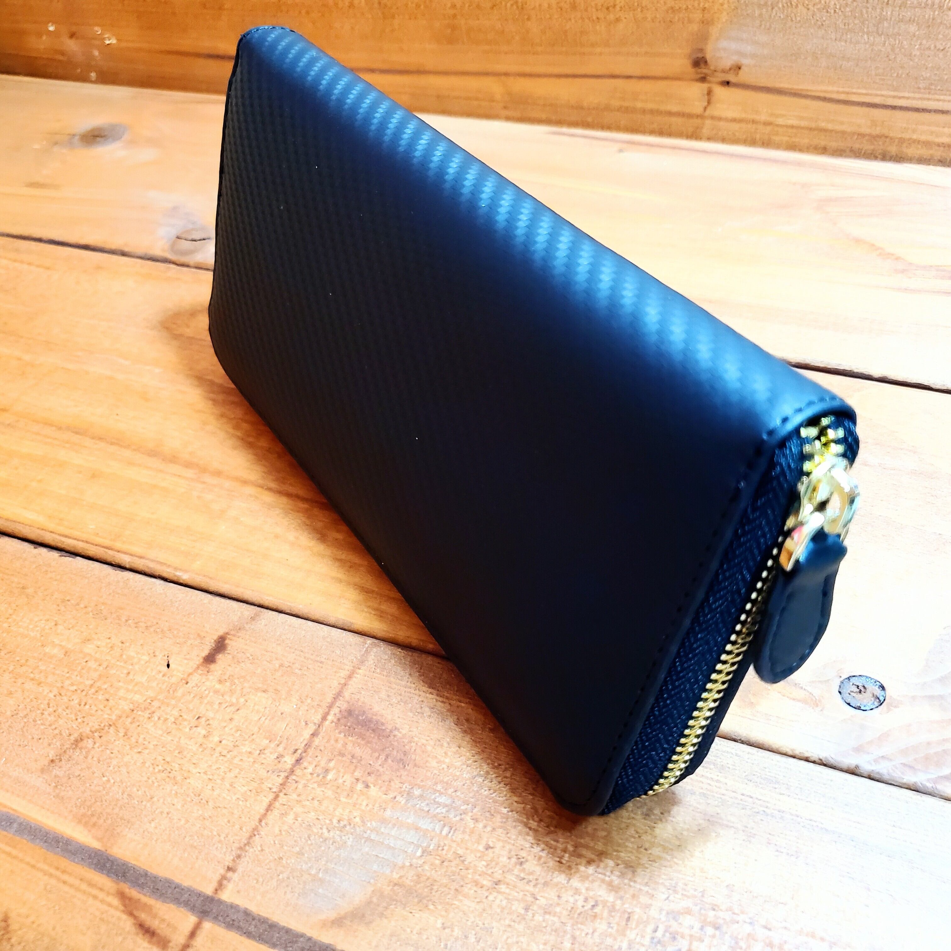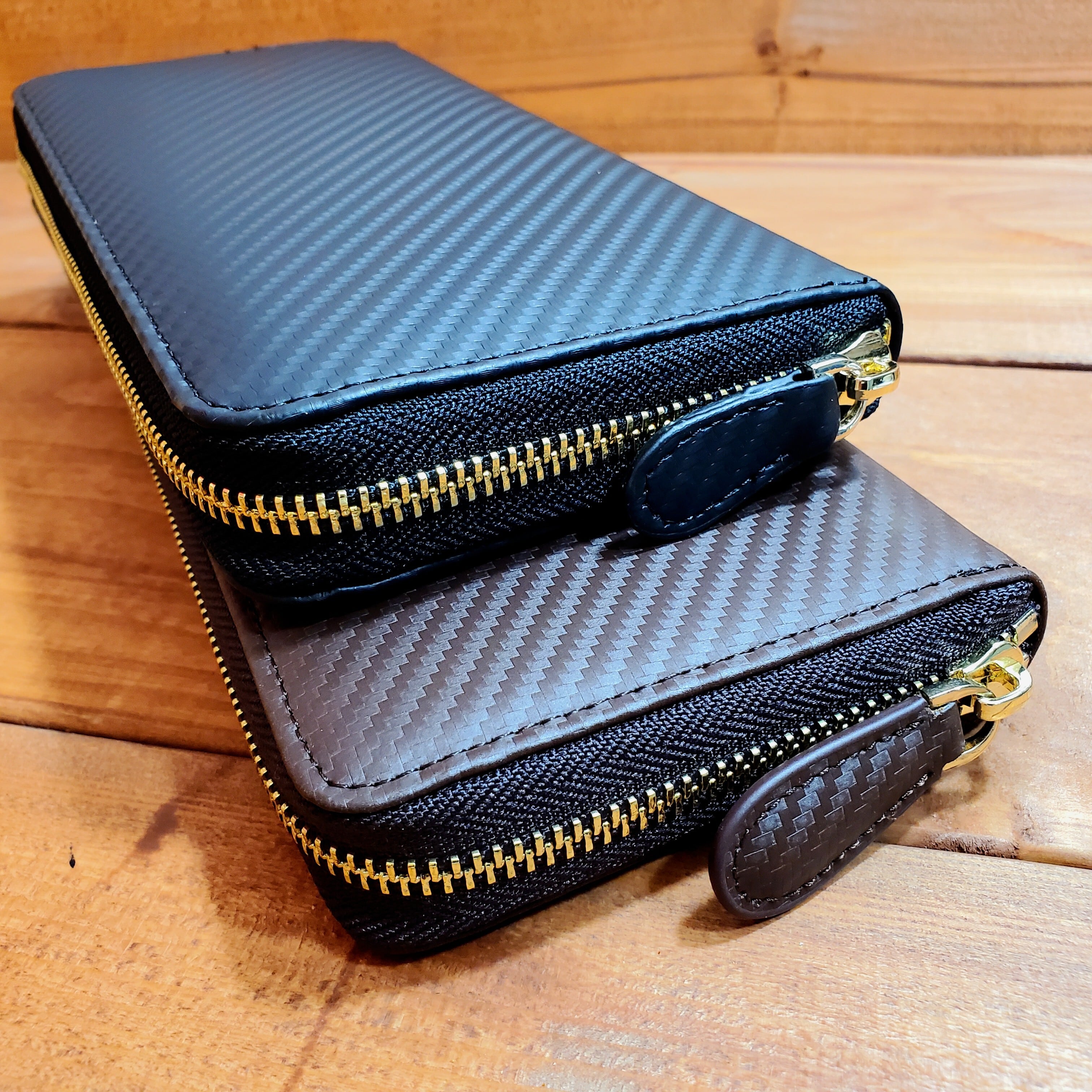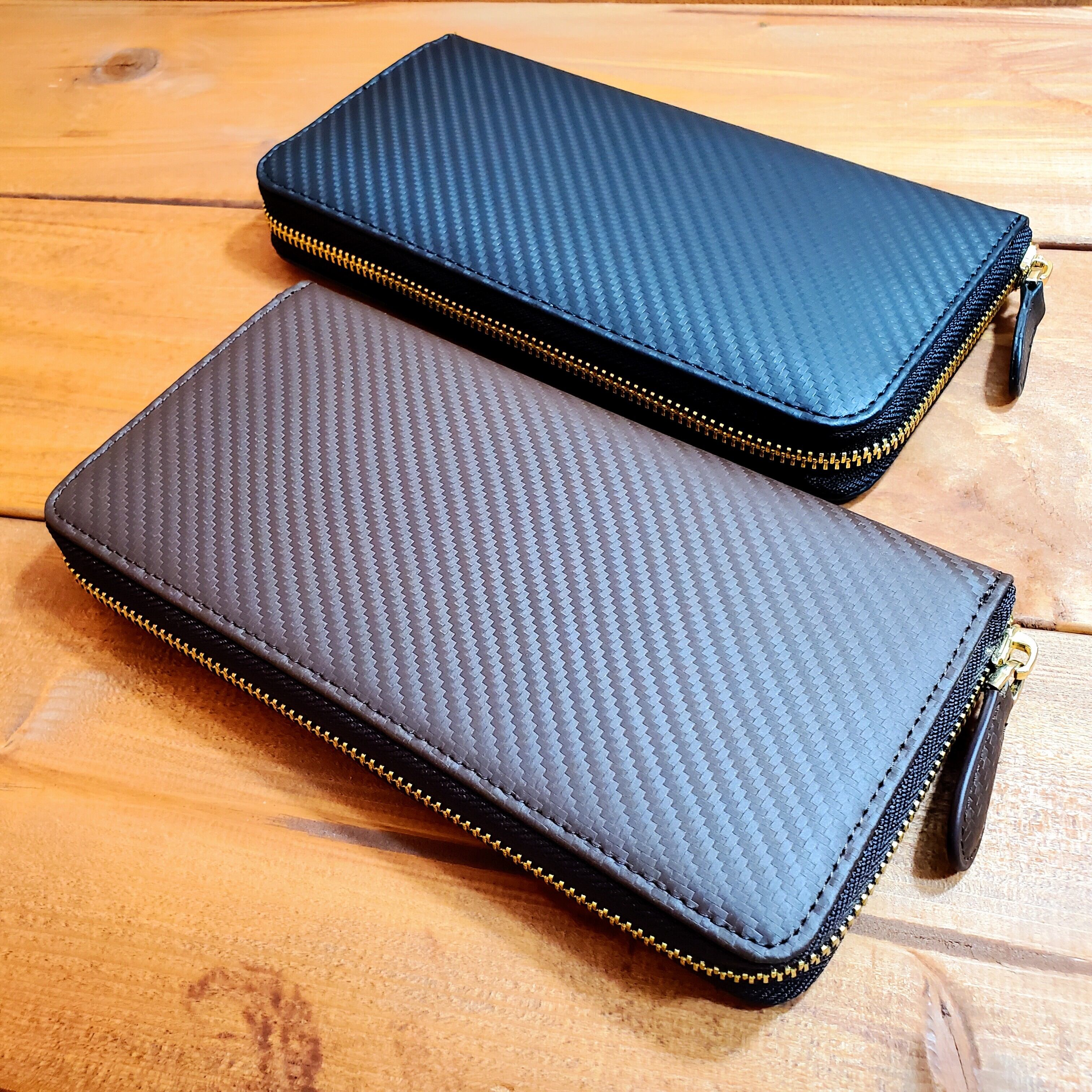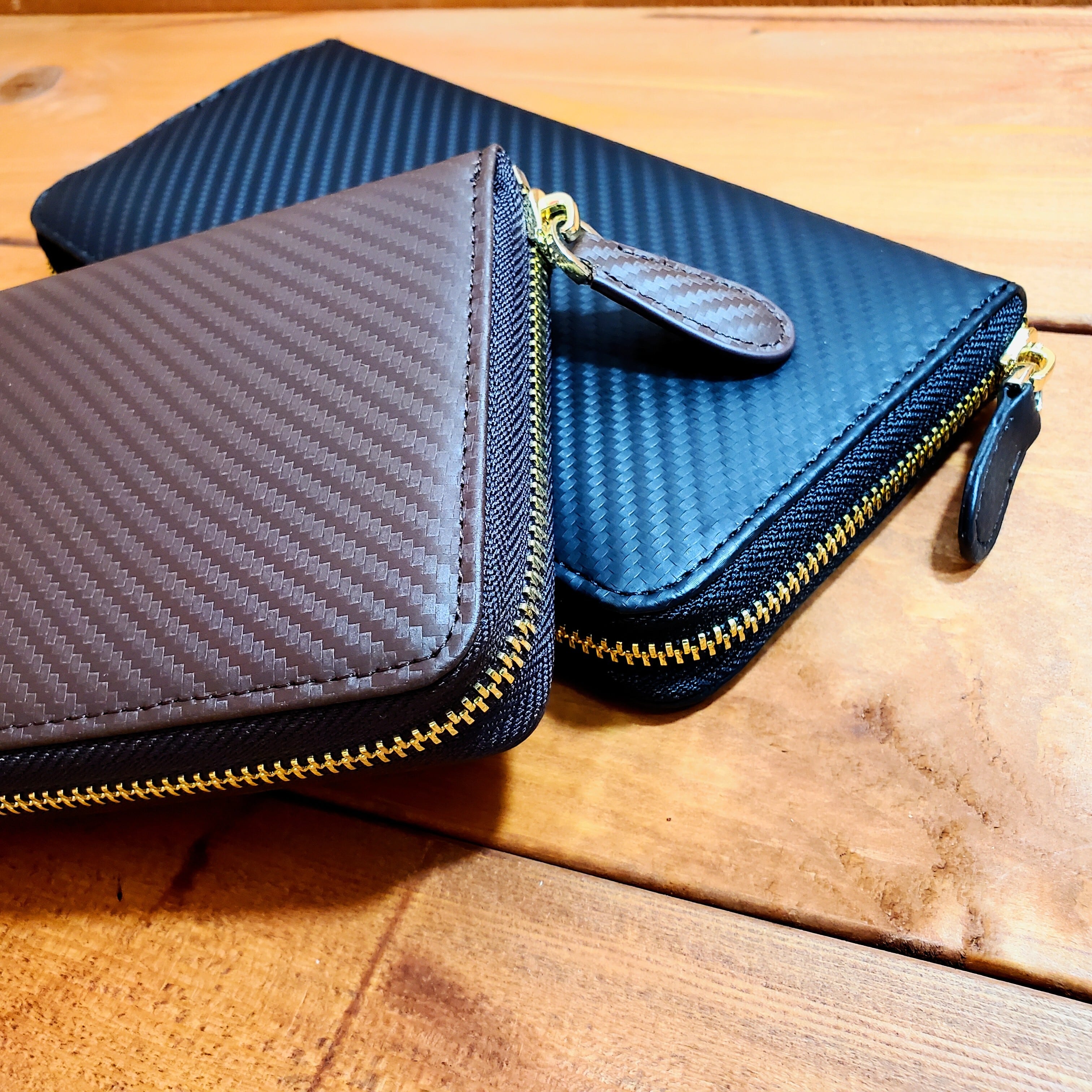 カーボンレザーを使用したラウンドファスナーロングウォレットです。
