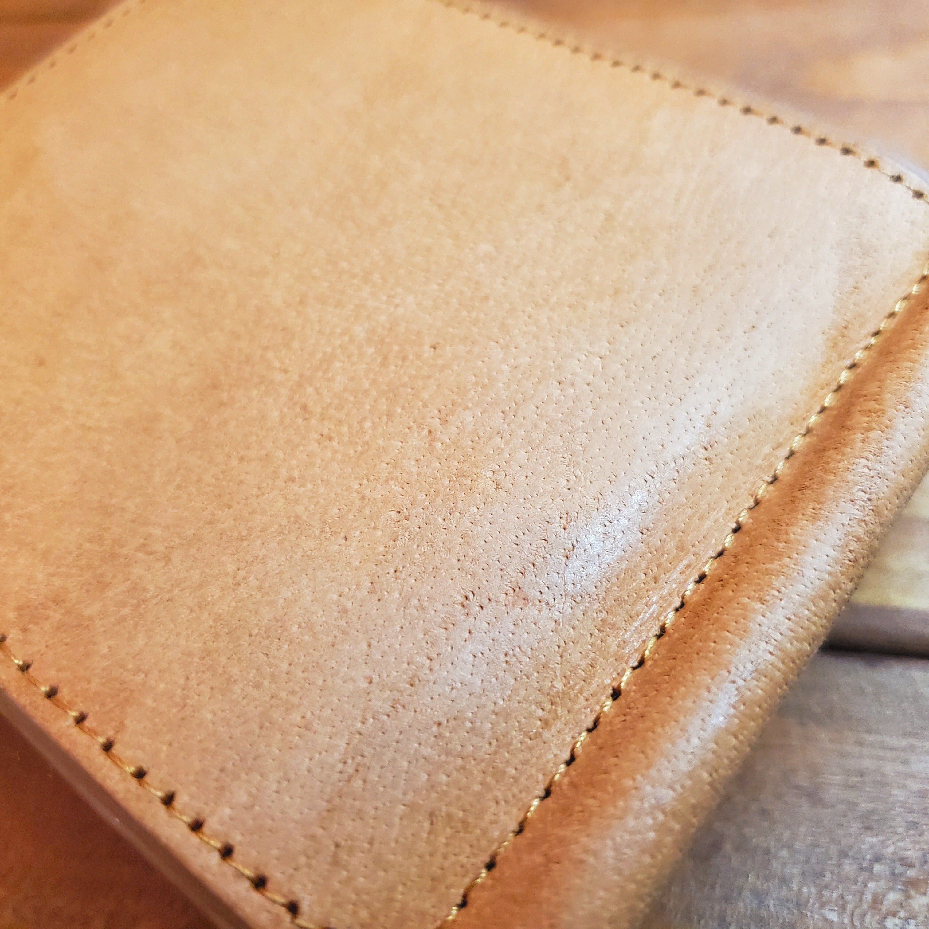 武骨で味のあるバッファローレザー(キャメル)は使用するたびに味が出て経年変化をお楽しみいただけます。