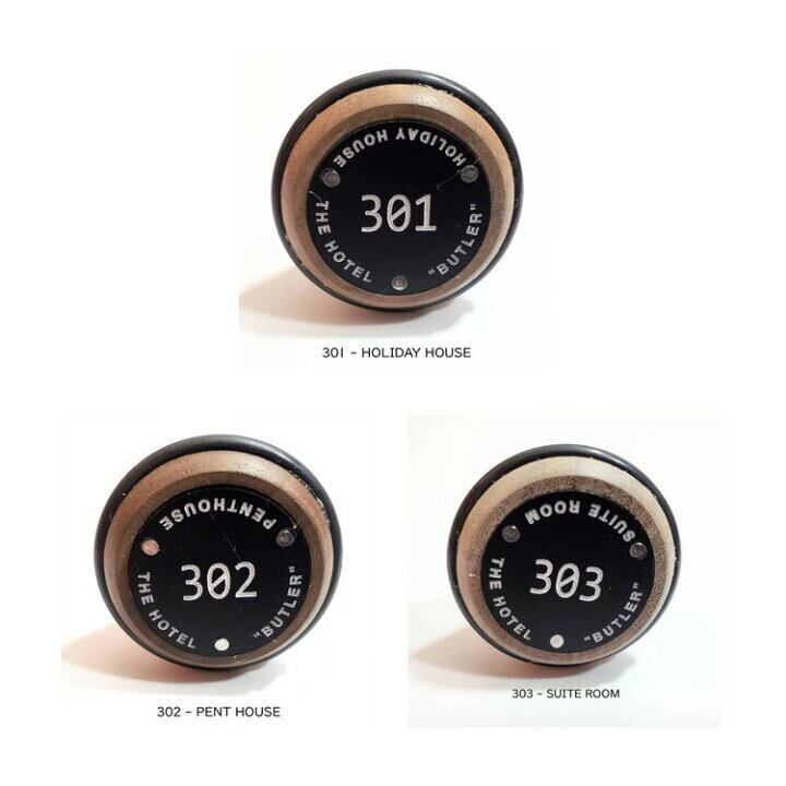 3色の色展開 色によって部屋番号のデザインとカラーが異なります。