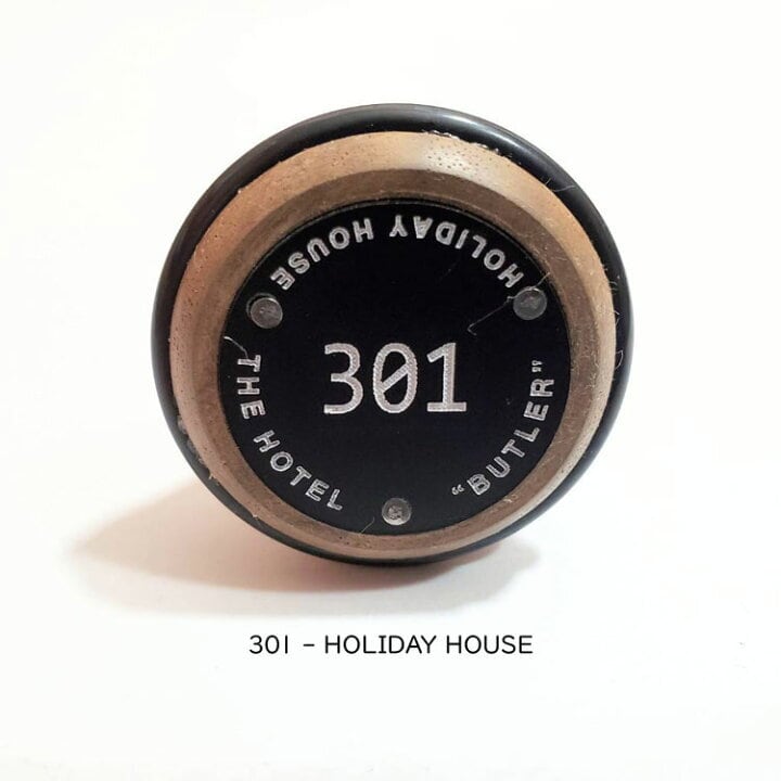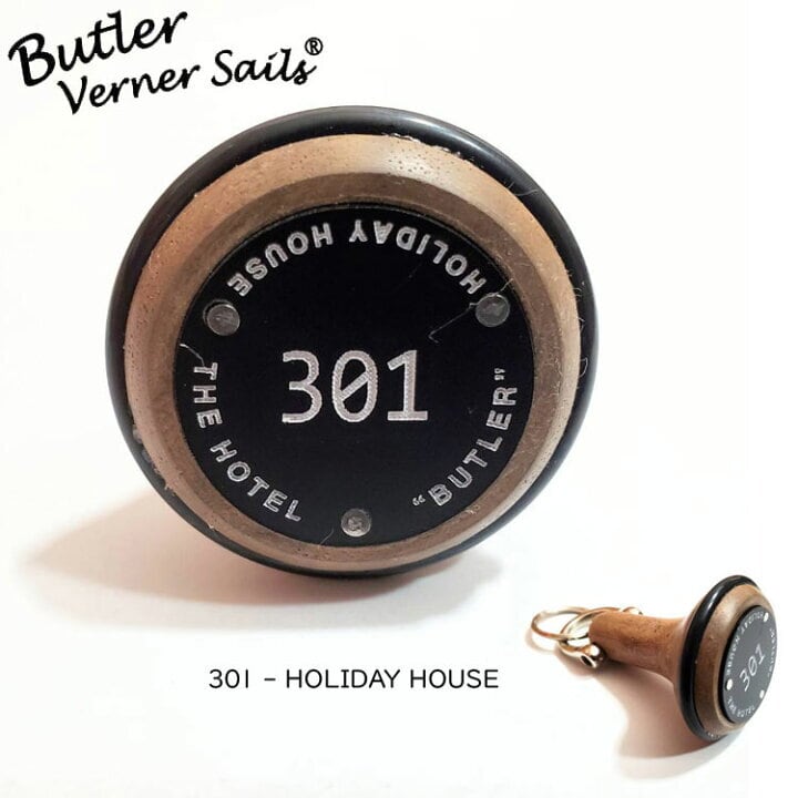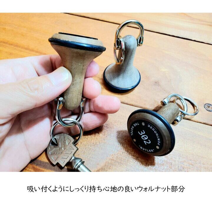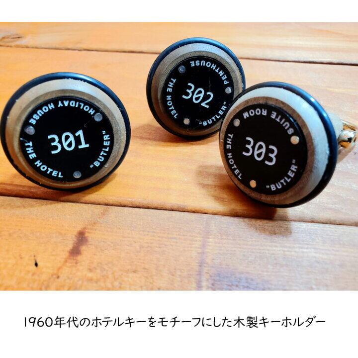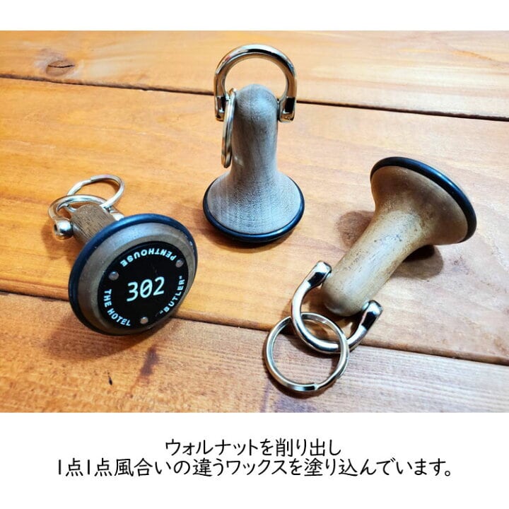 木材をひとつづつ削りだし、1960年代のホテルキーをモチーフに作られたキーホルダー。