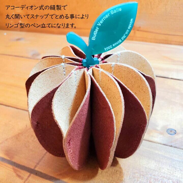 栃木レザーの本ヌメ革のリンゴデザインのペン立てです。