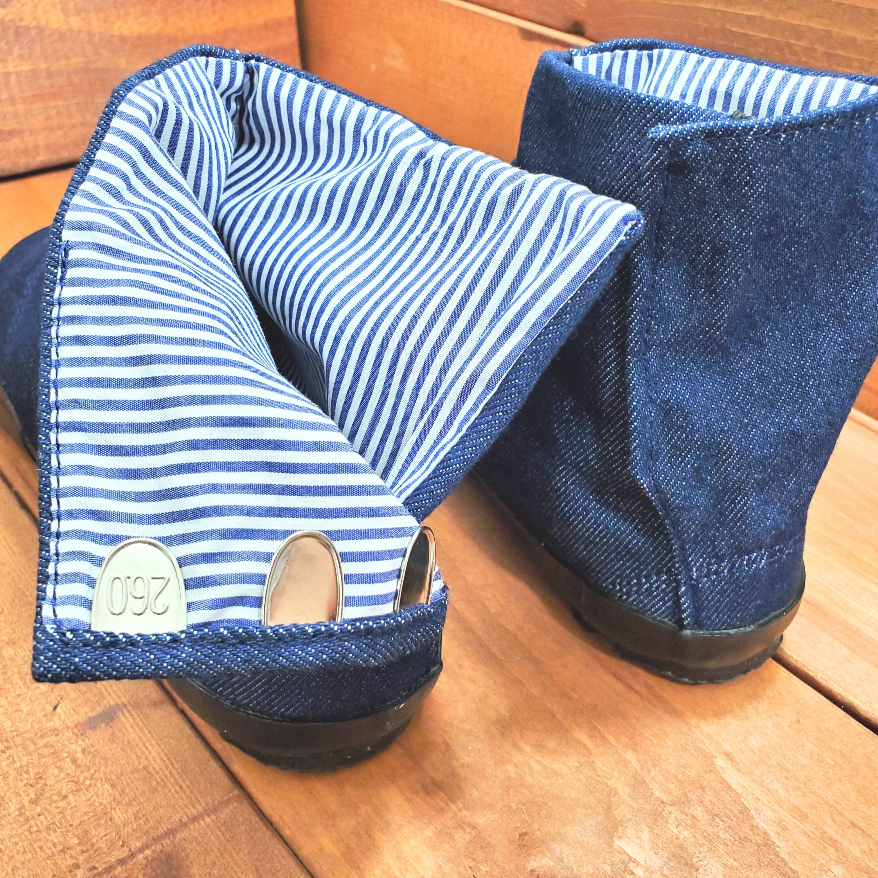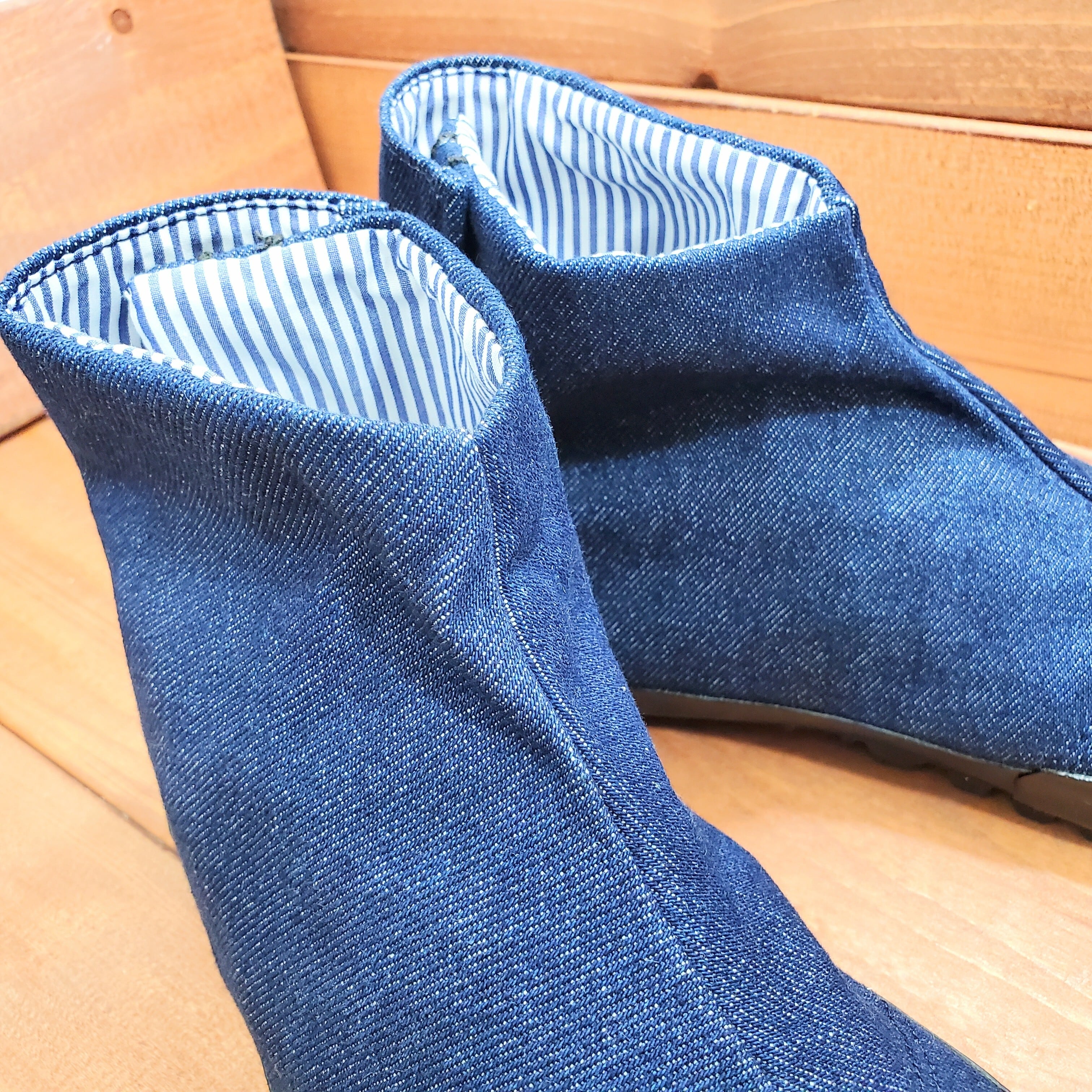 岡山デニムはのワッシャータイプを使用。ワッシャー加工の洗いざらしとインディゴならではの色落ちで独特の風合いを楽しめます。コハゼは東大阪で製造。ゴムは天然ゴムと合成ゴムを配合。材料、生産と全て日本国産にこだわった商品です。