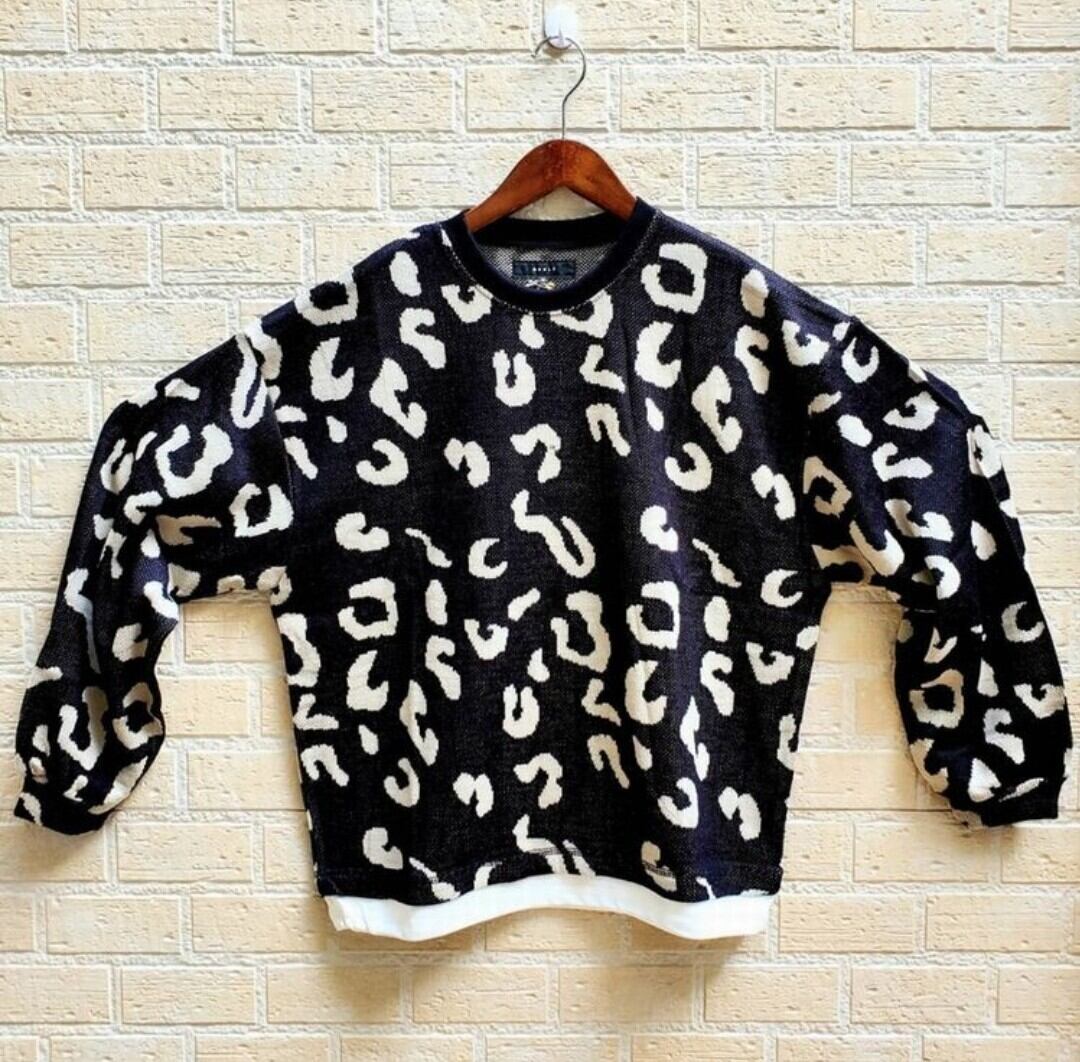 裾をレイヤード状に切り替えたゆったりとしたサイジングのニット。