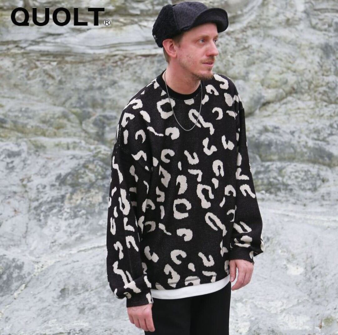 QUOLT 総柄ニッソー レイヤード風ドローコード付(ブラック)