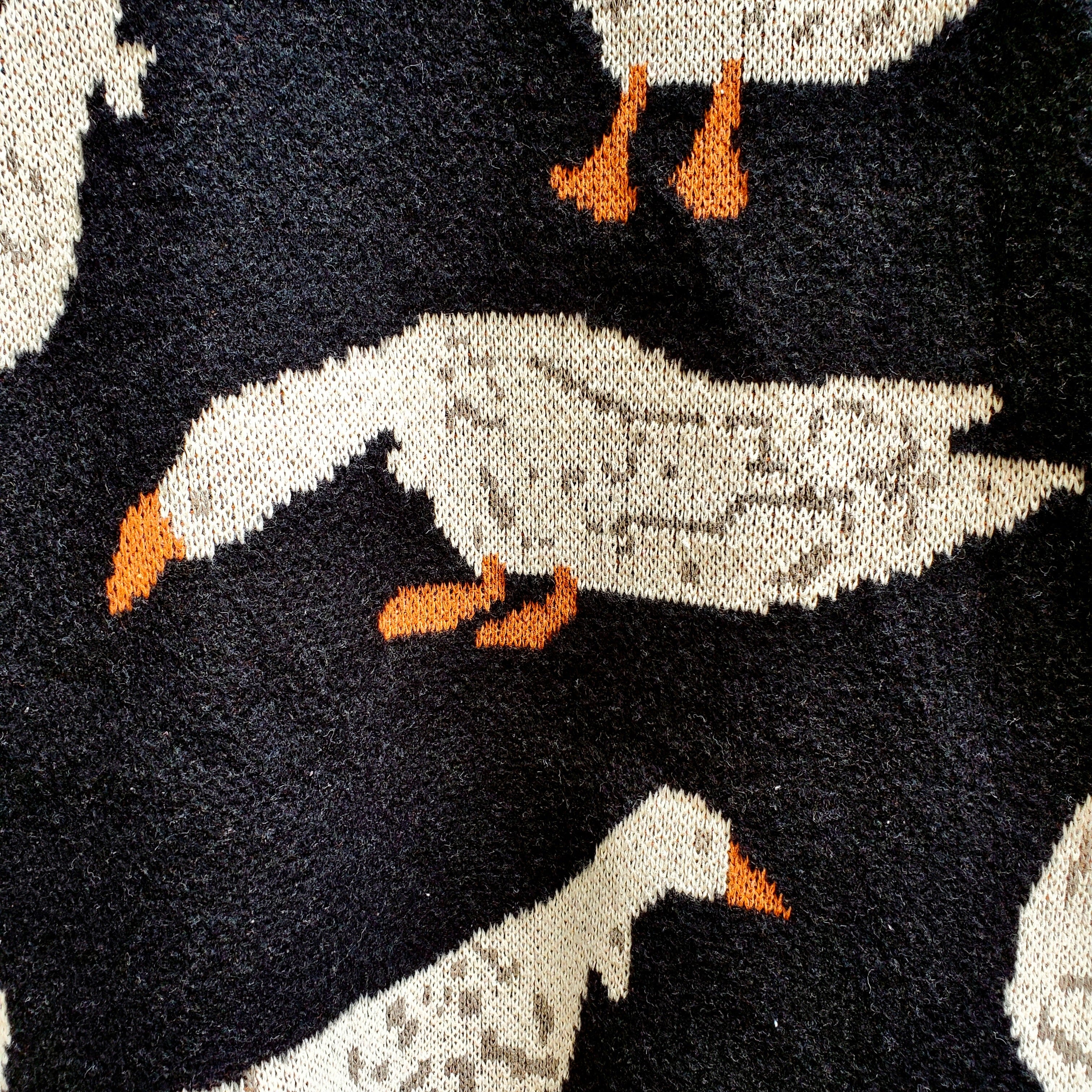 ダック(アヒル)柄のブラック、カーキ、ブルーの3色展開。