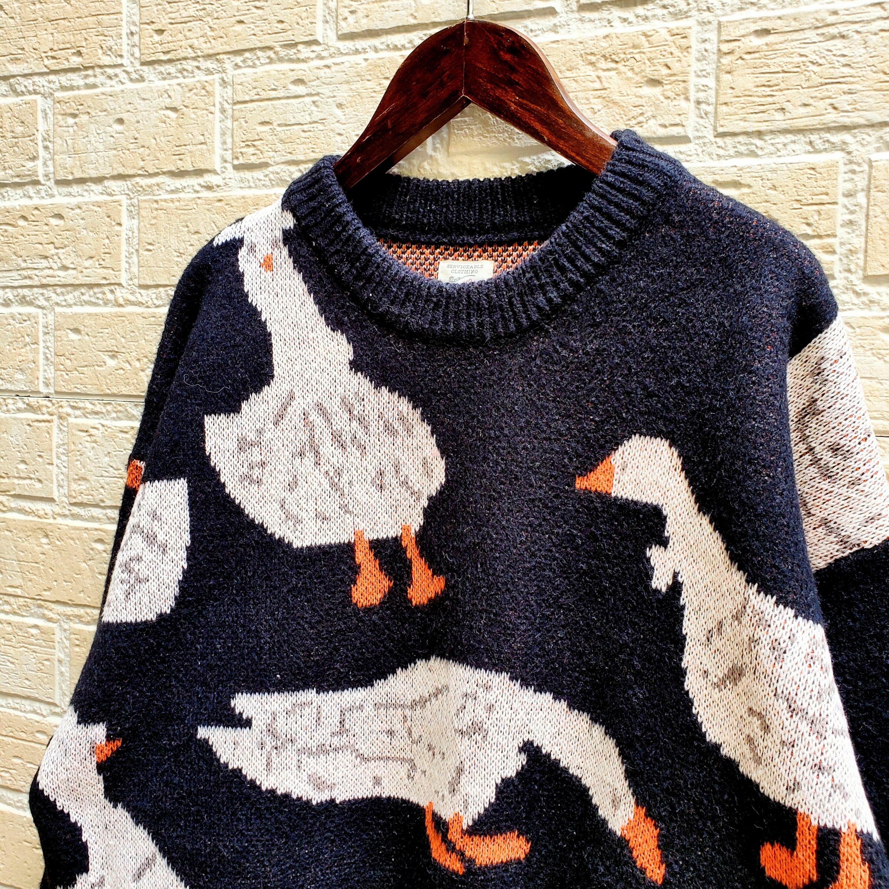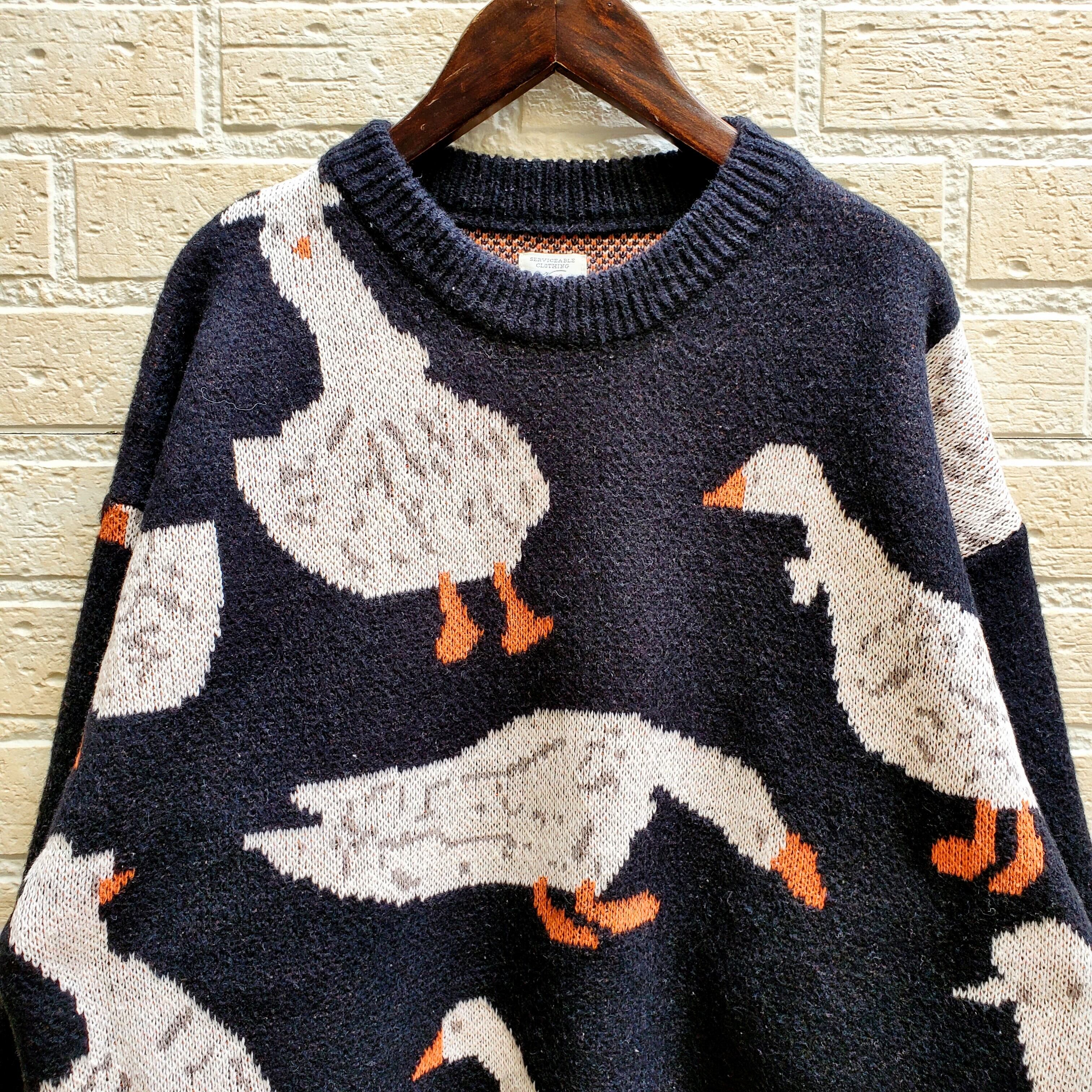遊び心溢れるアニマル柄のジャガード編みが特徴のルーズニット。
