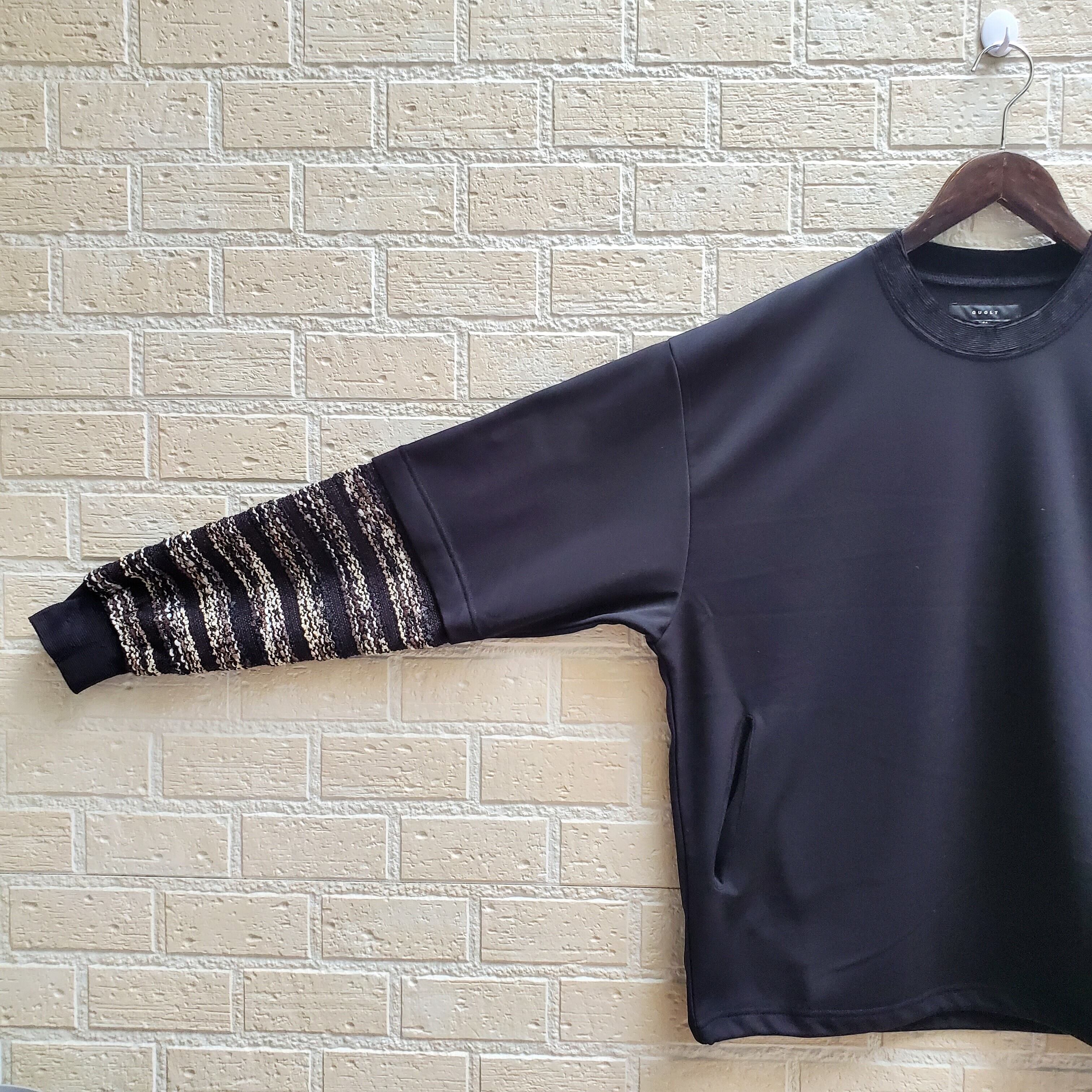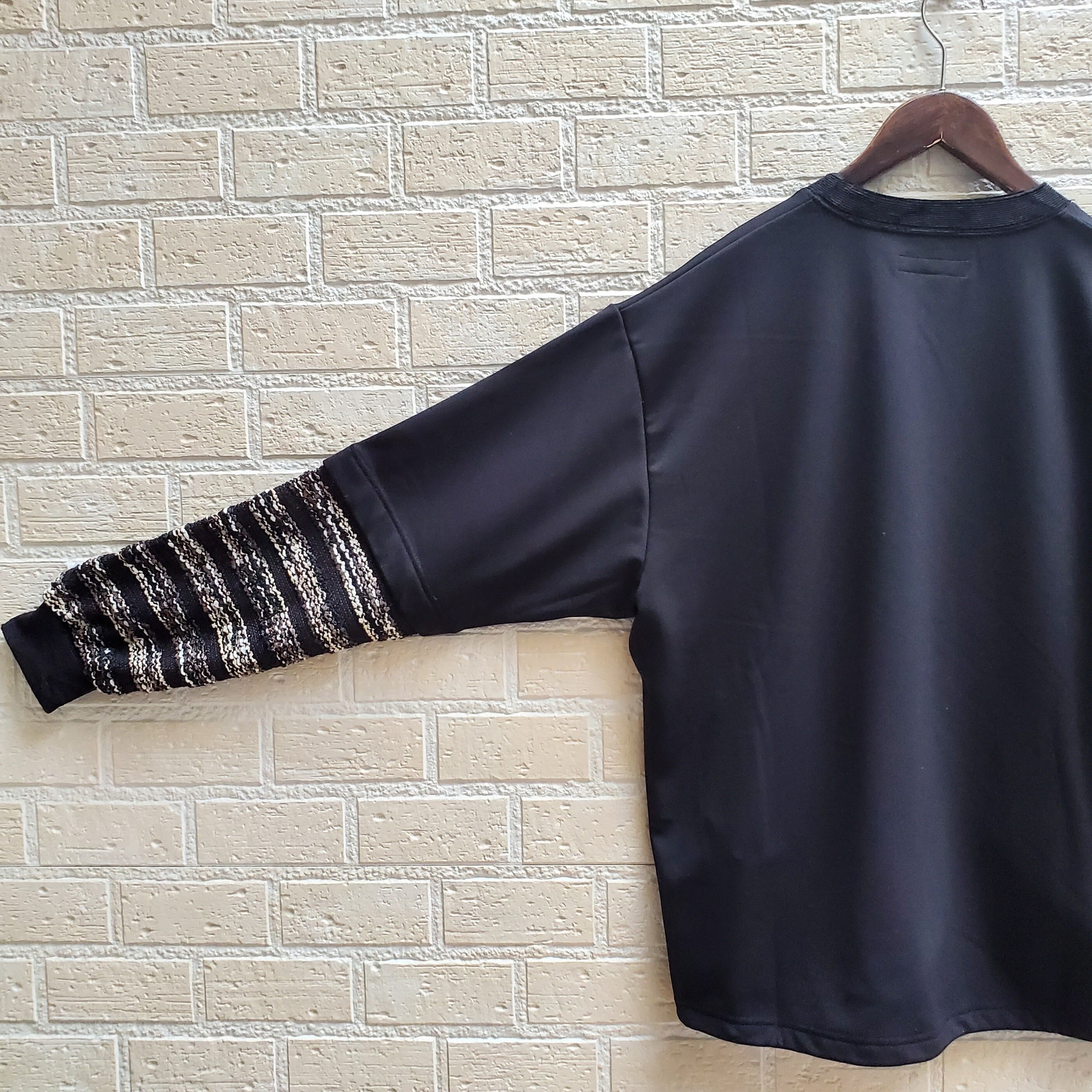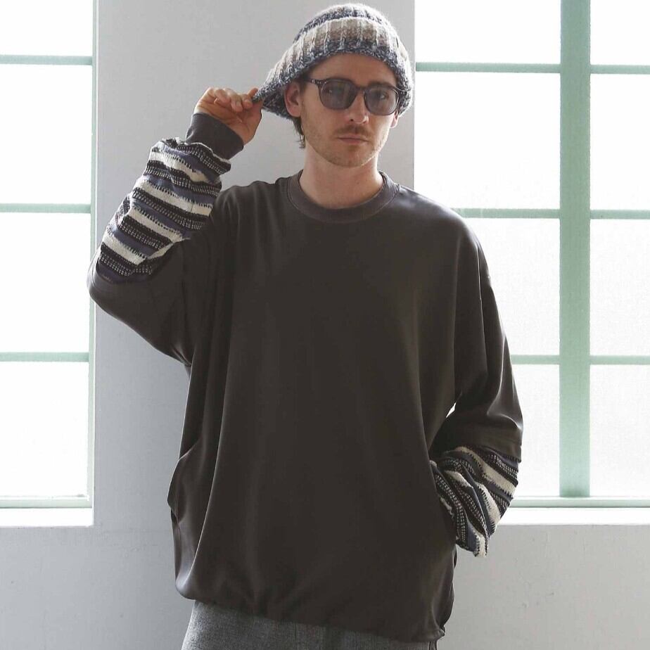 表面がさらりとした肌触りで裏地フリースの保温性のある機能素材と 変則編みニット袖を組み合わせたカットソー。 フロントにポケットを搭載し、裾をドローコードで絞る事が可能。 首& 袖リブには肌触りの良いコーデュロイニット生地を採用しています。 M 身幅62cm 着丈66cm L 身幅66cm 着丈73.5cm POLYESTER 100%